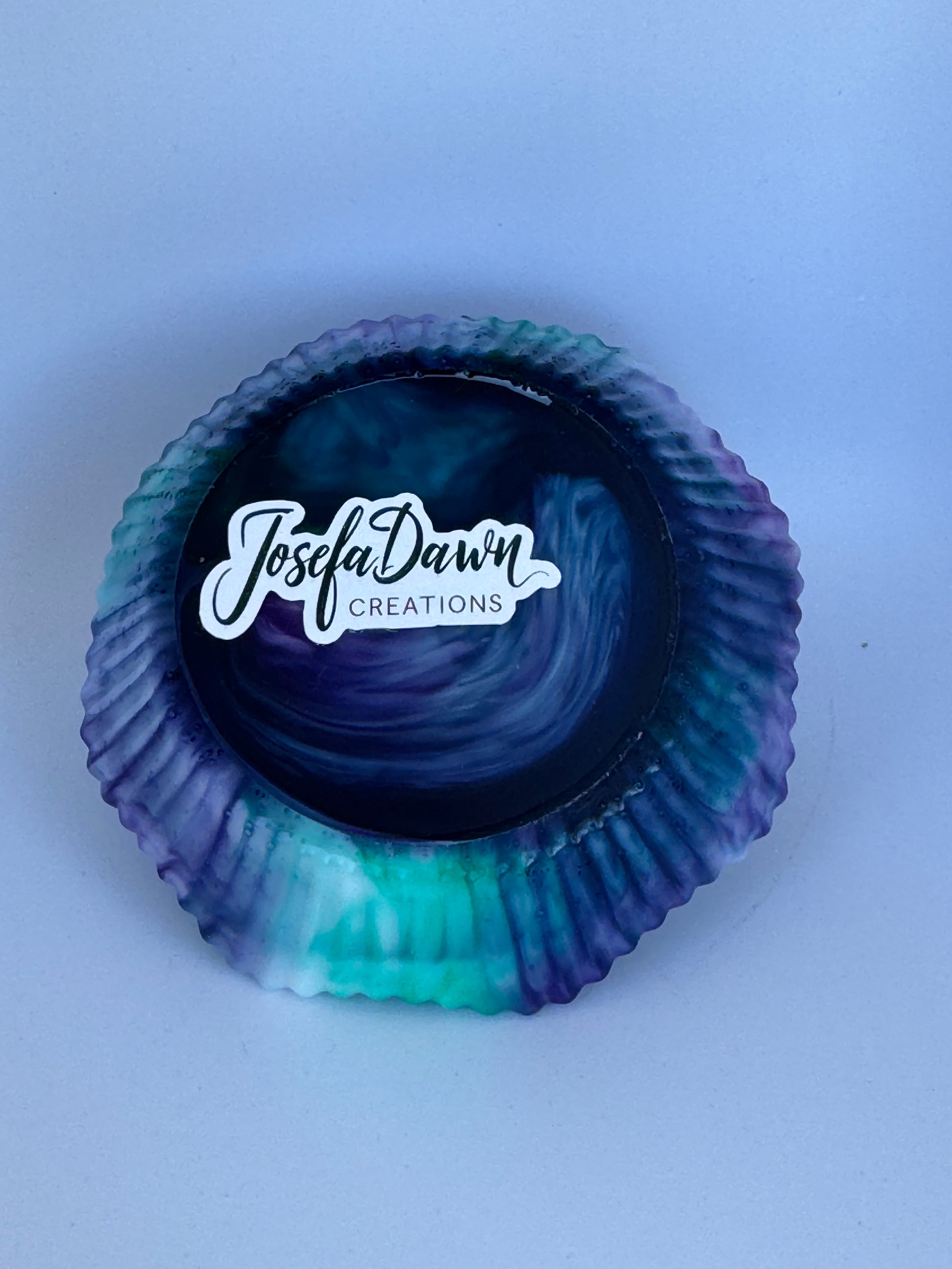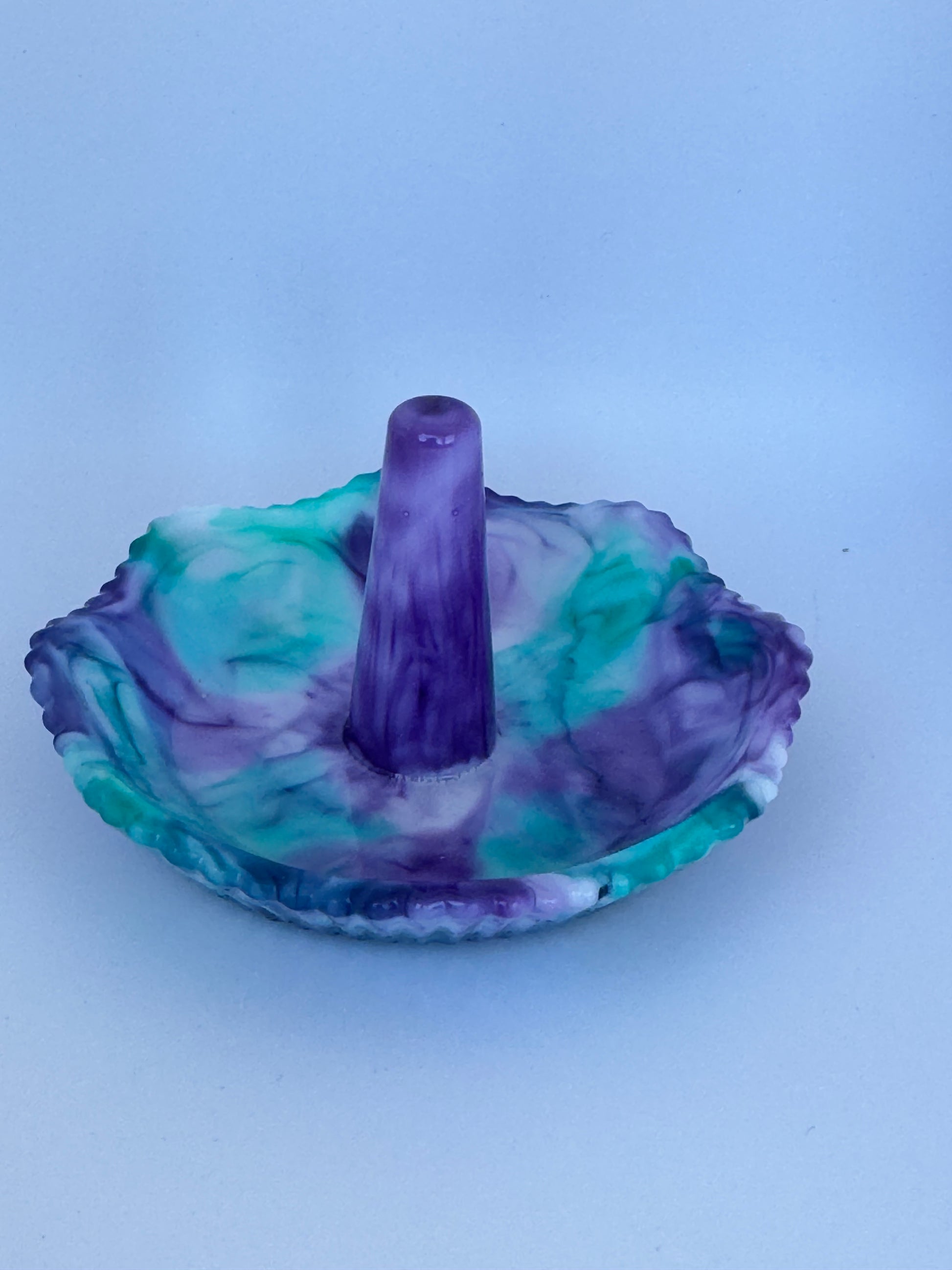 Purple and green ring holder. Made in with white epoxy resin with purple and green alcohol ink.